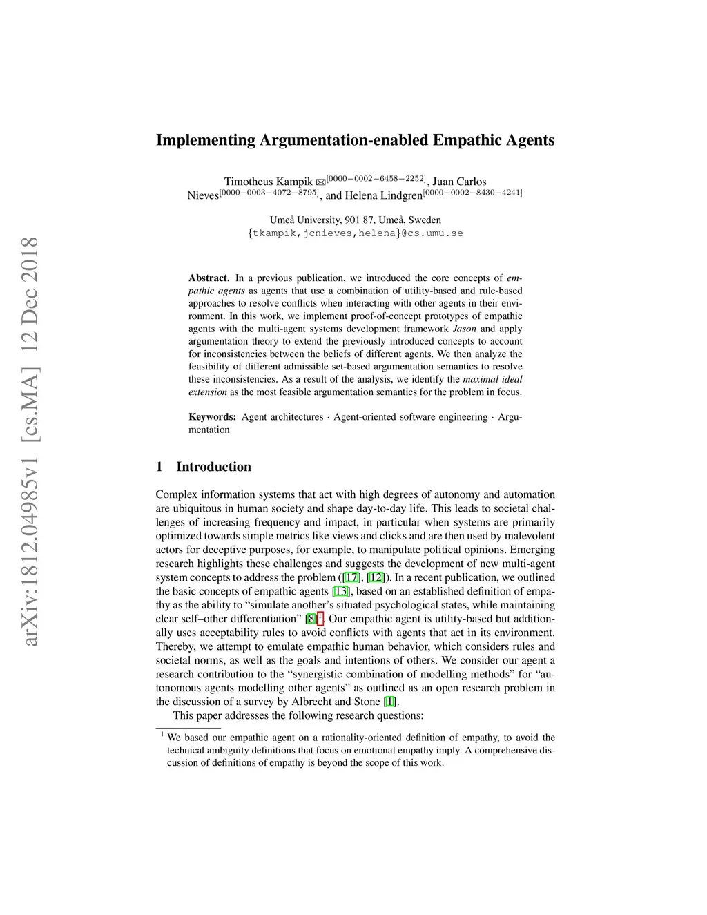 In a previous publication, we introduced the core concepts of empathic agents as agents that use a combination of utility-based and rule-based approaches to resolve conflicts when interacting with other agents in their environment. In this work, we implement proof-of-concept prototypes of empathic agents with the multi-agent systems development framework Jason and apply argumentation theory to extend the previously introduced concepts to account for inconsistencies between the beliefs of different agents. We then analyze the feasibility of different admissible set-based argumentation semantics to resolve these inconsistencies. As a result of the analysis we identify the maximal ideal extension as the most feasible argumentation semantics for the problem in focus.