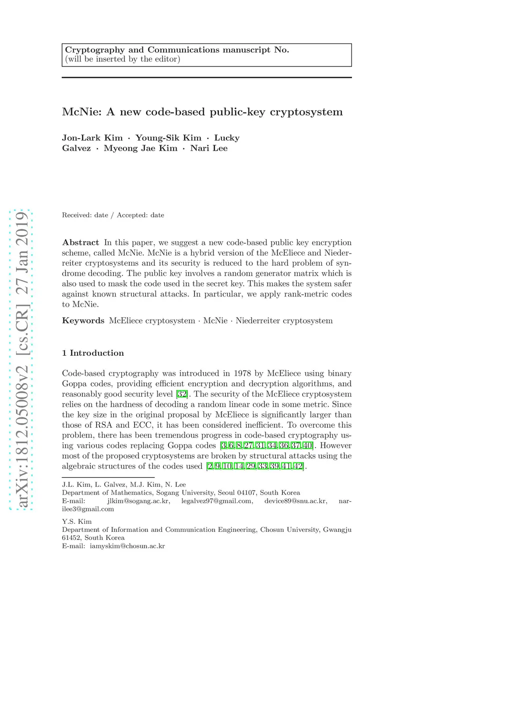 In this paper, we suggest a code-based public key encryption scheme, called McNie. McNie is a hybrid version of the McEliece and Niederreiter cryptosystems and its security is reduced to the hard problem of syndrome decoding. The public key involves a random generator matrix which is also used to mask the code used in the secret key. This makes the system safer against known structural attacks. In particular, we apply rank-metric codes to McNie.