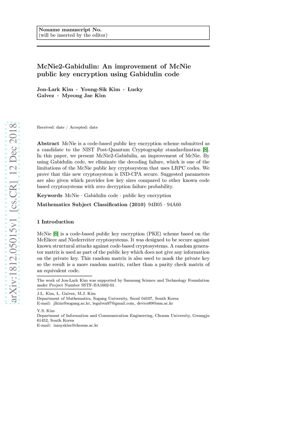 McNie2-Gabidulin: An improvement of McNie public key encryption using
