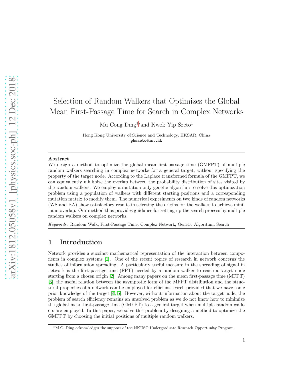 Selection of Random Walkers that Optimizes the Global Mean First-Passage