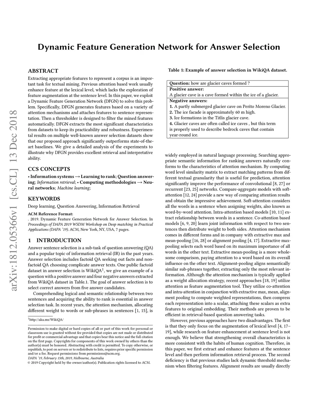 Dynamic Feature Generation Network for Answer Selection