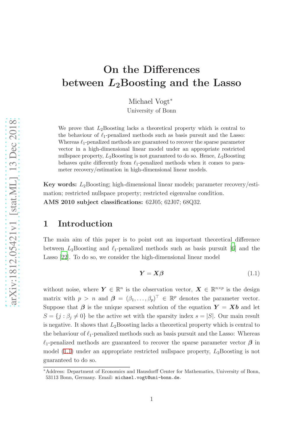 We prove that L2-Boosting lacks a theoretical property which is central to the behaviour of l1-penalized methods such as basis pursuit and the Lasso: Whereas l1-penalized methods are guaranteed to recover the sparse parameter vector in a high-dimensional linear model under an appropriate restricted nullspace property, L2-Boosting is not guaranteed to do so. Hence, L2-Boosting behaves quite differently from l1-penalized methods when it comes to parameter recovery/estimation in high-dimensional linear models.