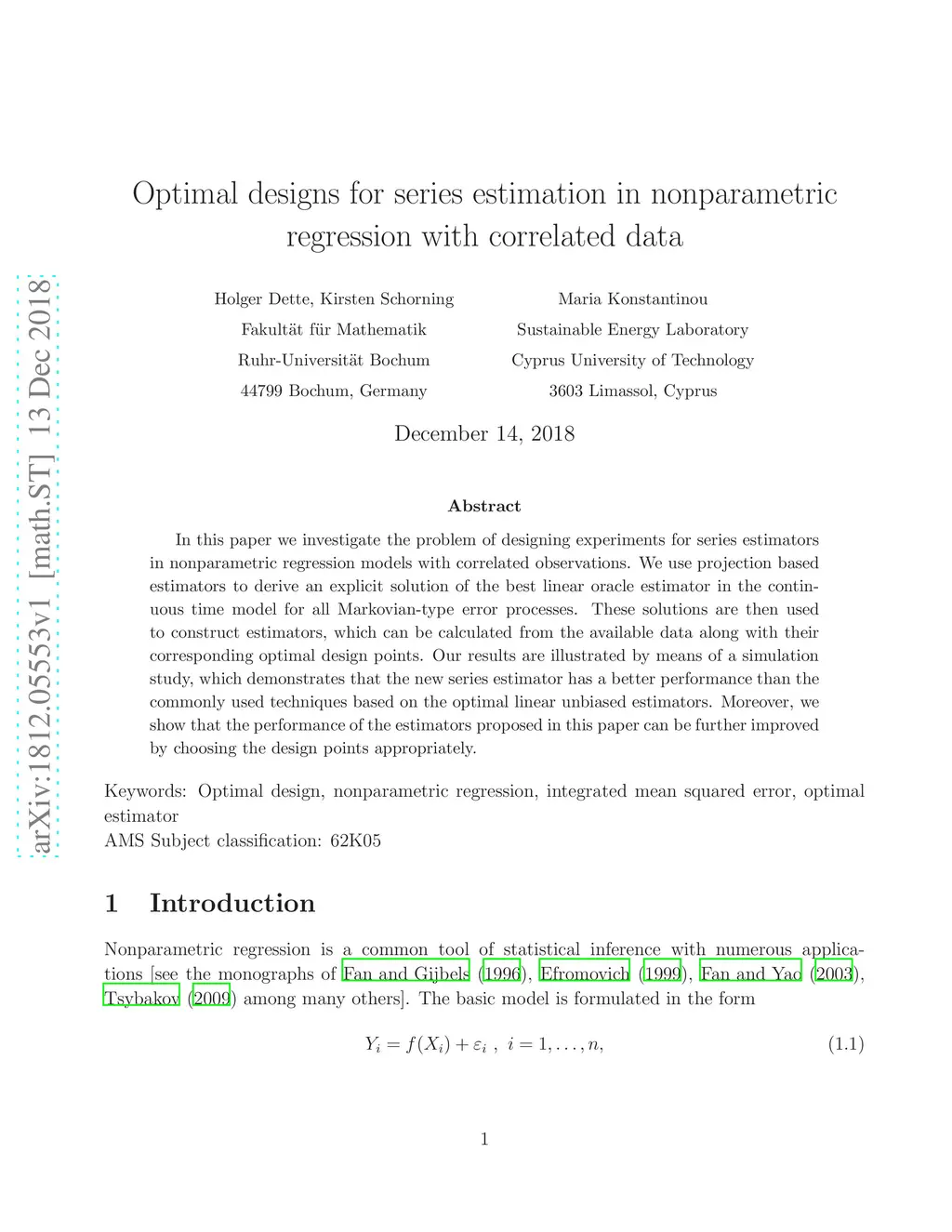 In this paper we investigate the problem of designing experiments for series estimators in nonparametric regression models with correlated observations. We use projection based estimators to derive an explicit solution of the best linear oracle estimator in the continuous time model for all Markovian-type error processes. These solutions are then used to construct estimators, which can be calculated from the available data along with their corresponding optimal design points. Our results are illustrated by means of a simulation study, which demonstrates that the new series estimator has a better performance than the commonly used techniques based on the optimal linear unbiased estimators. Moreover, we show that the performance of the estimators proposed in this paper can be further improved by choosing the design points appropriately.