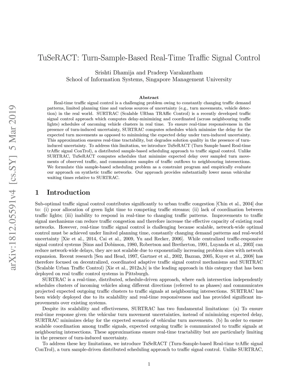 TuSeRACT: Turn-Sample-Based Real-Time Traffic Signal Control
