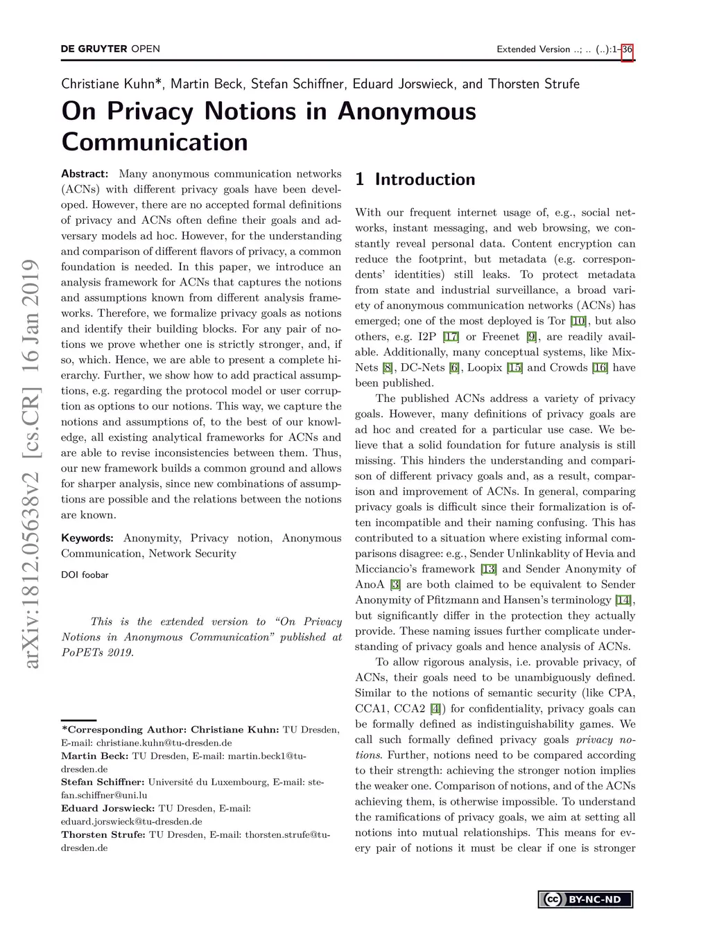 Many anonymous communication networks (ACNs) with different privacy goals have been developed. However, there are no accepted formal definitions of privacy and ACNs often define their goals and adversary models ad hoc. However, for the understanding and comparison of different flavors of privacy, a common foundation is needed. In this paper, we introduce an analysis framework for ACNs that captures the notions and assumptions known from different analysis frameworks. Therefore, we formalize privacy goals as notions and identify their building blocks. For any pair of notions we prove whether one is strictly stronger, and, if so, which. Hence, we are able to present a complete hierarchy. Further, we show how to add practical assumptions, e.g. regarding the protocol model or user corruption as options to our notions. This way, we capture the notions and assumptions of, to the best of our knowledge, all existing analytical frameworks for ACNs and are able to revise inconsistencies between them. Thus, our new framework builds a common ground and allows for sharper analysis, since new combinations of assumptions are possible and the relations between the notions are known.