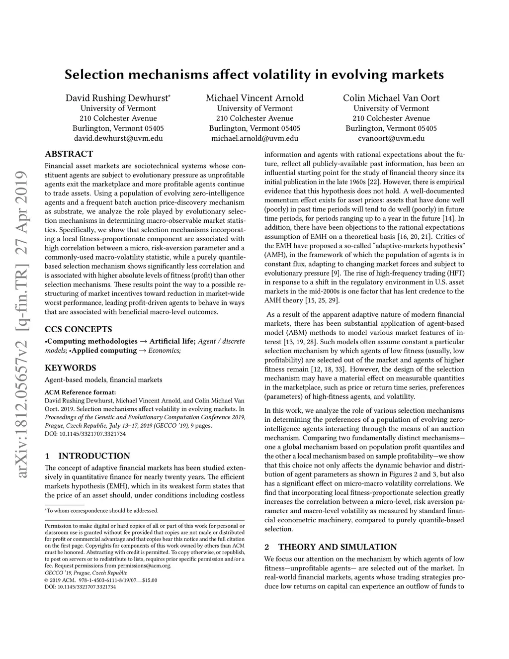 Financial asset markets are sociotechnical systems whose constituent agents are subject to evolutionary pressure as unprofitable agents exit the marketplace and more profitable agents continue to trade assets. Using a population of evolving zero-intelligence agents and a frequent batch auction price-discovery mechanism as substrate, we analyze the role played by evolutionary selection mechanisms in determining macro-observable market statistics. In particular, we show that selection mechanisms incorporating a local fitness-proportionate component are associated with high correlation between a micro, risk-aversion parameter and a commonly-used macro-volatility statistic, while a purely quantile-based selection mechanism shows significantly less correlation.