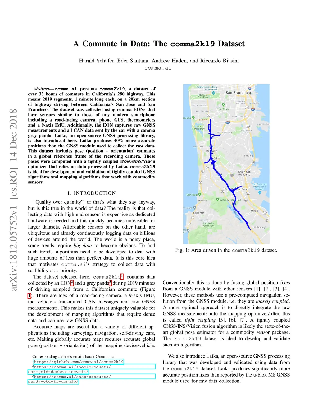 A Commute in Data: The comma2k19 Dataset