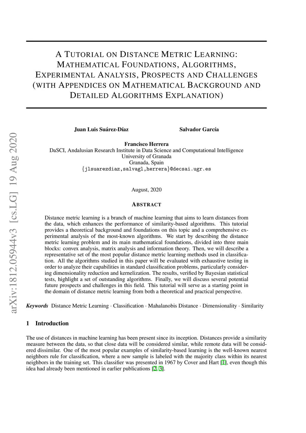 A Tutorial on Distance Metric Learning: Mathematical Foundations,