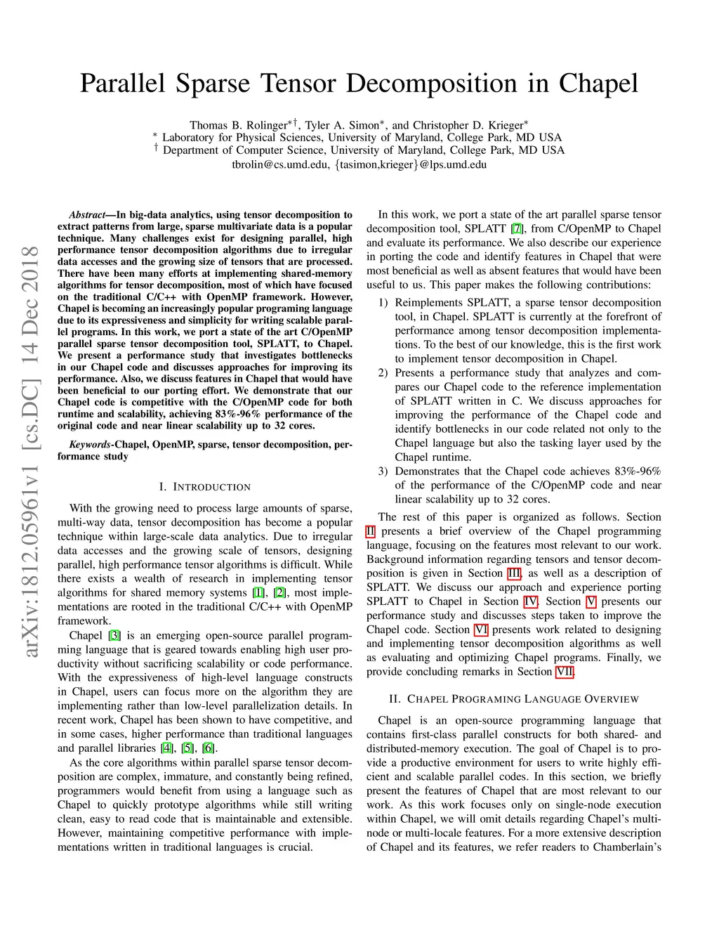 Parallel Sparse Tensor Decomposition in Chapel
