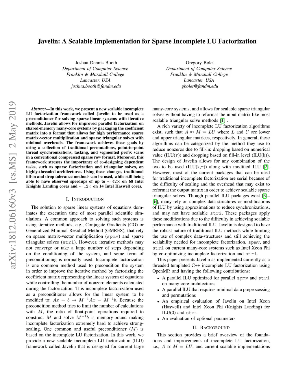 Javelin: A Scalable Implementation for Sparse Incomplete LU