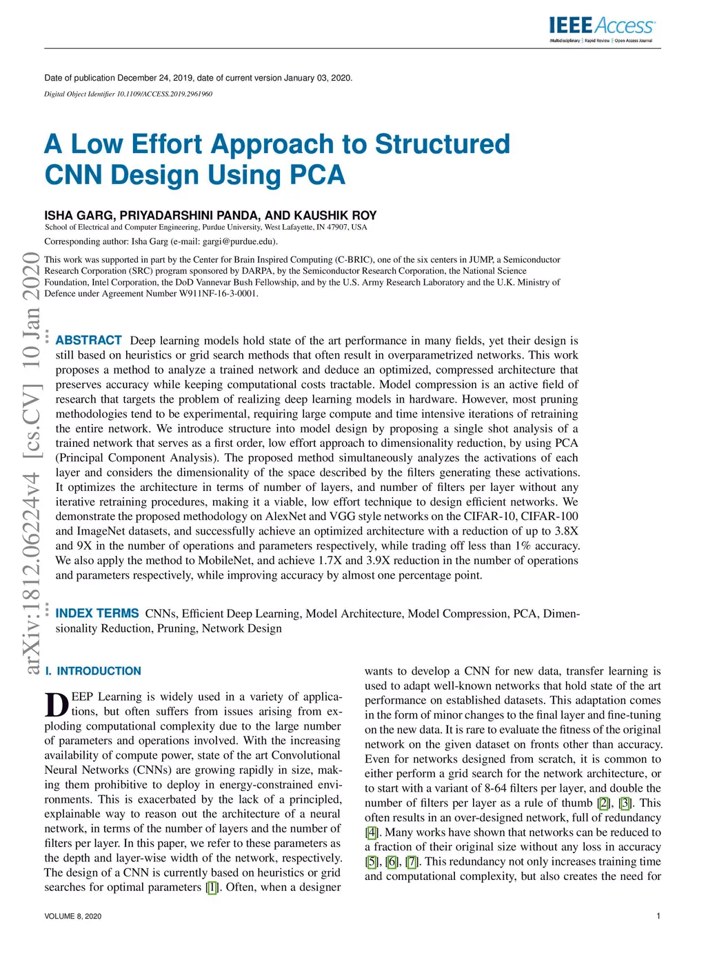 Deep learning models hold state of the art performance in many fields, yet their design is still based on heuristics or grid search methods that often result in overparametrized networks. This work proposes a method to analyze a trained network and deduce an optimized, compressed architecture that preserves accuracy while keeping computational costs tractable. Model compression is an active field of research that targets the problem of realizing deep learning models in hardware. However, most pruning methodologies tend to be experimental, requiring large compute and time intensive iterations of retraining the entire network. We introduce structure into model design by proposing a single shot analysis of a trained network that serves as a first order, low effort approach to dimensionality reduction, by using PCA (Principal Component Analysis). The proposed method simultaneously analyzes the activations of each layer and considers the dimensionality of the space described by the filters generating these activations. It optimizes the architecture in terms of number of layers, and number of filters per layer without any iterative retraining procedures, making it a viable, low effort technique to design efficient networks. We demonstrate the proposed methodology on AlexNet and VGG style networks on the CIFAR-10, CIFAR-100 and ImageNet datasets, and successfully achieve an optimized architecture with a reduction of up to 3.8X and 9X in the number of operations and parameters respectively, while trading off less than 1% accuracy. We also apply the method to MobileNet, and achieve 1.7X and 3.9X reduction in the number of operations and parameters respectively, while improving accuracy by almost one percentage point.