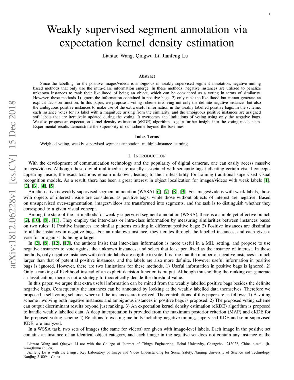 Weakly supervised segment annotation via expectation kernel density