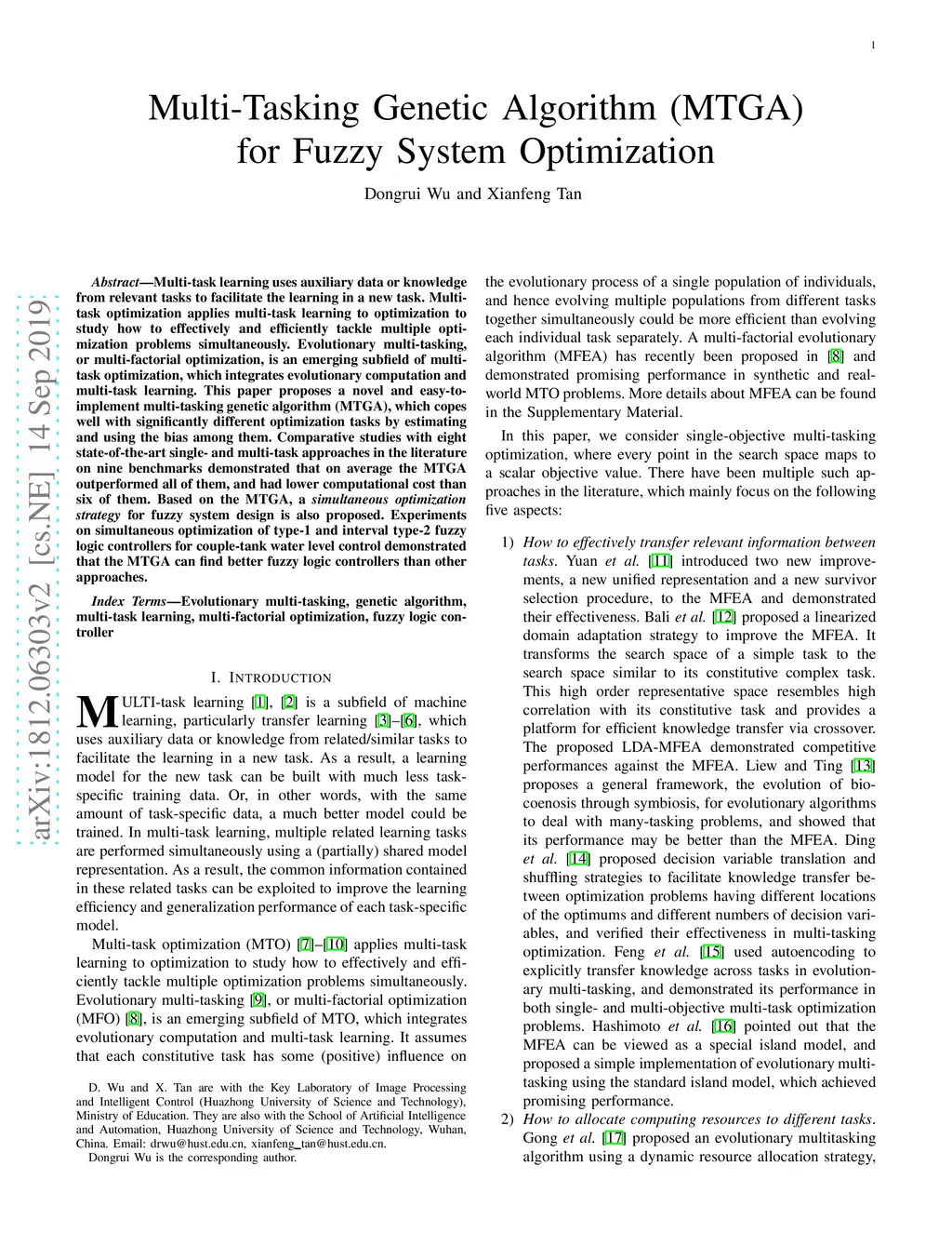 Multi-Tasking Genetic Algorithm (MTGA) for Fuzzy System Optimization