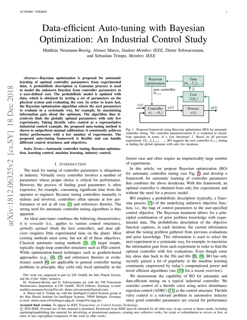 Data-efficient Auto-tuning with Bayesian Optimization: An Industrial