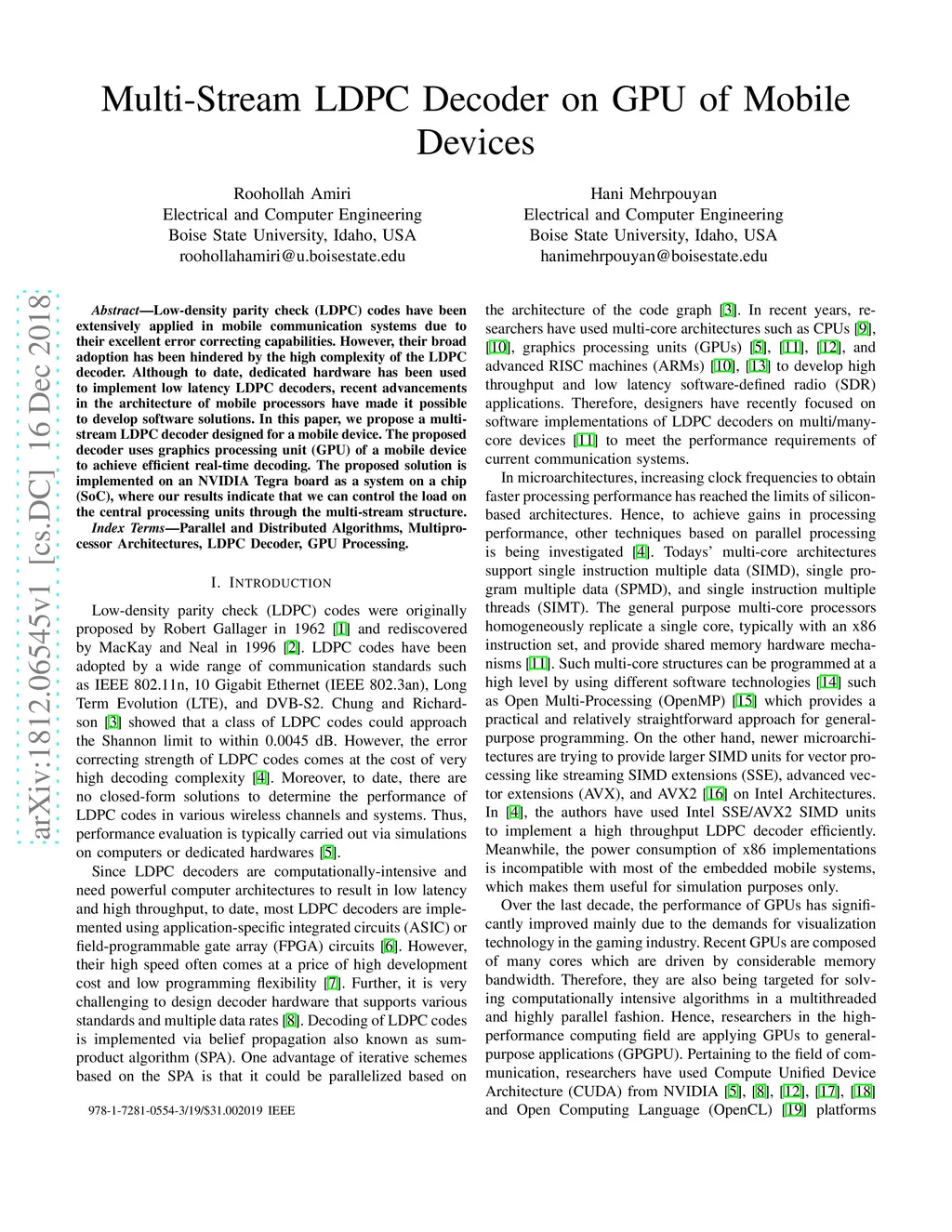 Multi-Stream LDPC Decoder on GPU of Mobile Devices