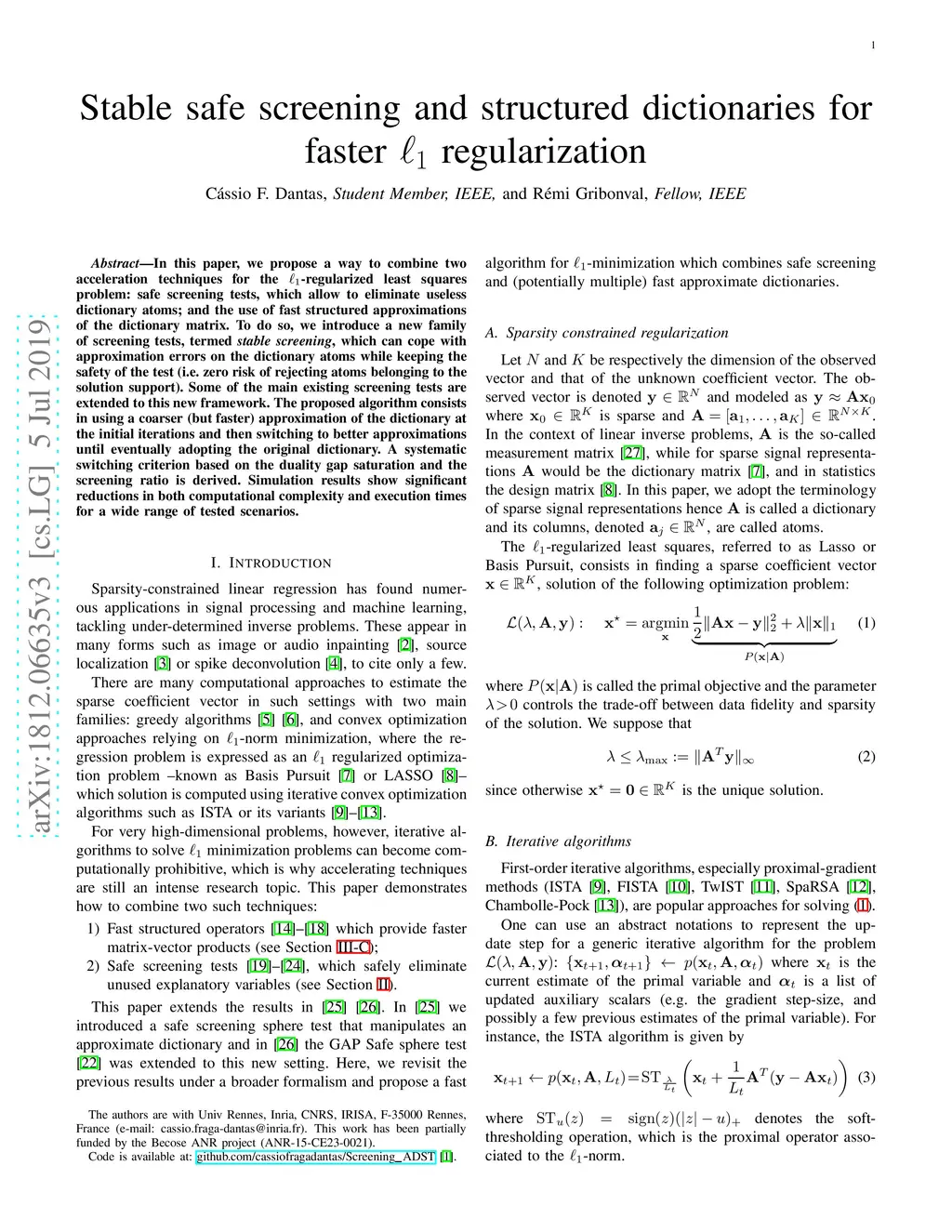 Stable safe screening and structured dictionaries for faster L1