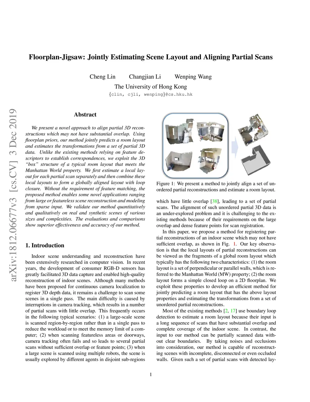 Floorplan-Jigsaw: Jointly Estimating Scene Layout and Aligning Partial