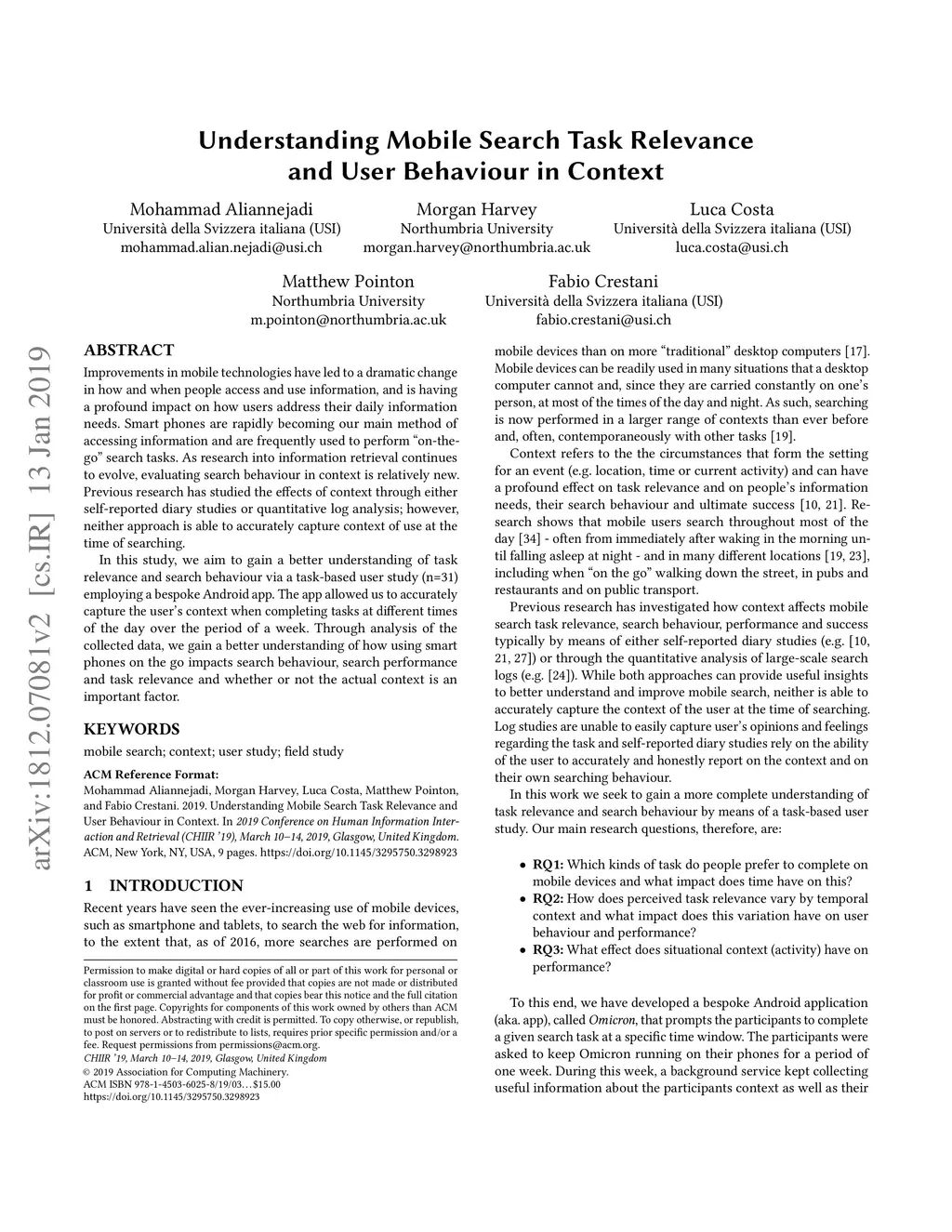 Understanding Mobile Search Task Relevance and User Behaviour in Context