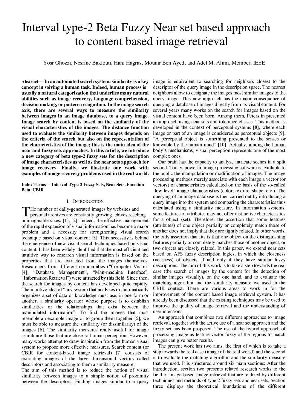 In an automated search system, similarity is a key concept in solving a human task. Indeed, human process is usually a natural categorization that underlies many natural abilities such as image recovery, language comprehension, decision making, or pattern recognition. In the image search axis, there are several ways to measure the similarity between images in an image database, to a query image. Image search by content is based on the similarity of the visual characteristics of the images. The distance function used to evaluate the similarity between images depends on the criteria of the search but also on the representation of the characteristics of the image; this is the main idea of the near and fuzzy sets approaches. In this article, we introduce a new category of beta type-2 fuzzy sets for the description of image characteristics as well as the near sets approach for image recovery. Finally, we illustrate our work with examples of image recovery problems used in the real world.