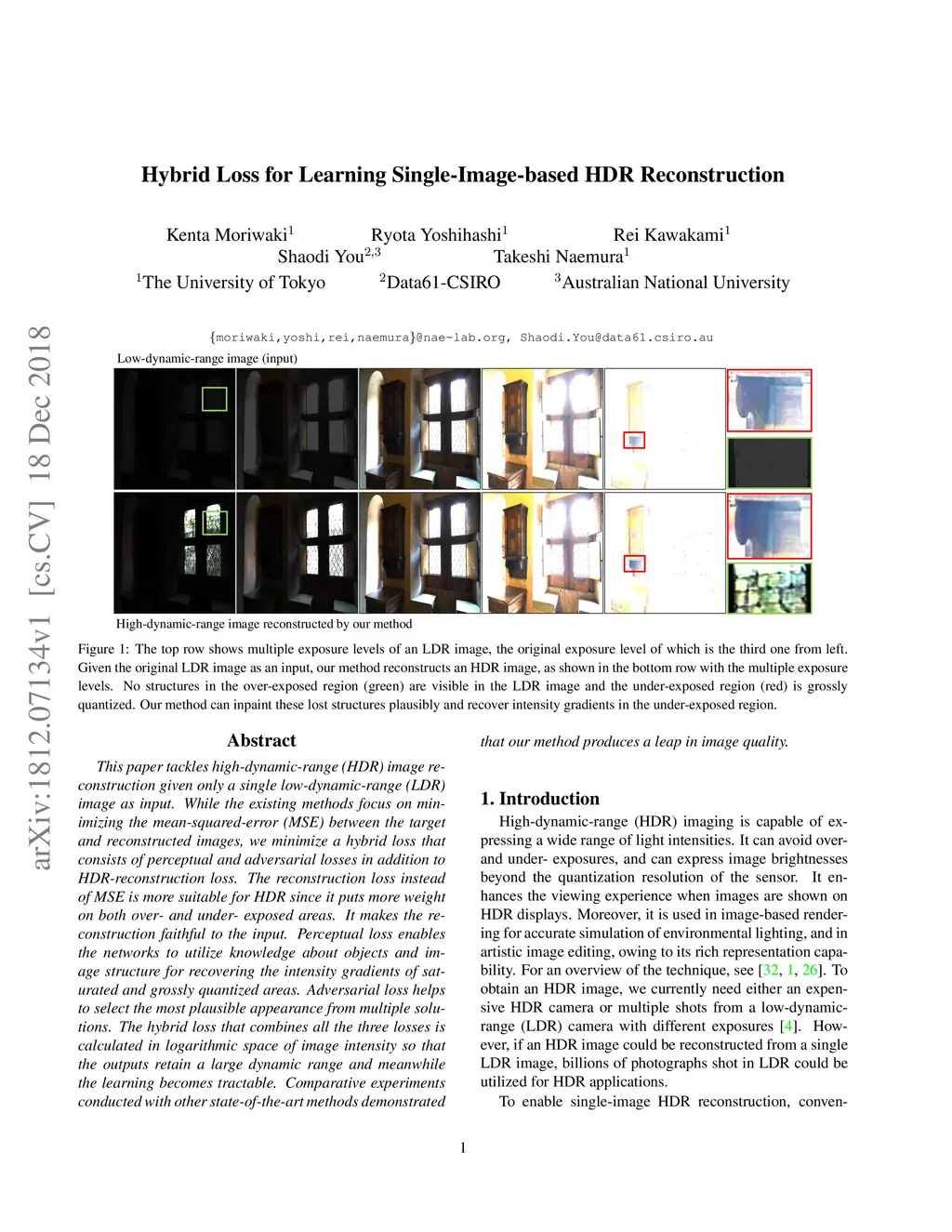 Hybrid Loss for Learning Single-Image-based HDR Reconstruction