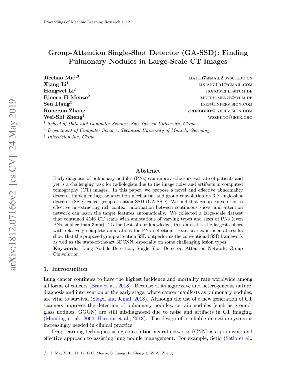 Group-Attention Single-Shot Detector (GA-SSD): Finding Pulmonary Nodules