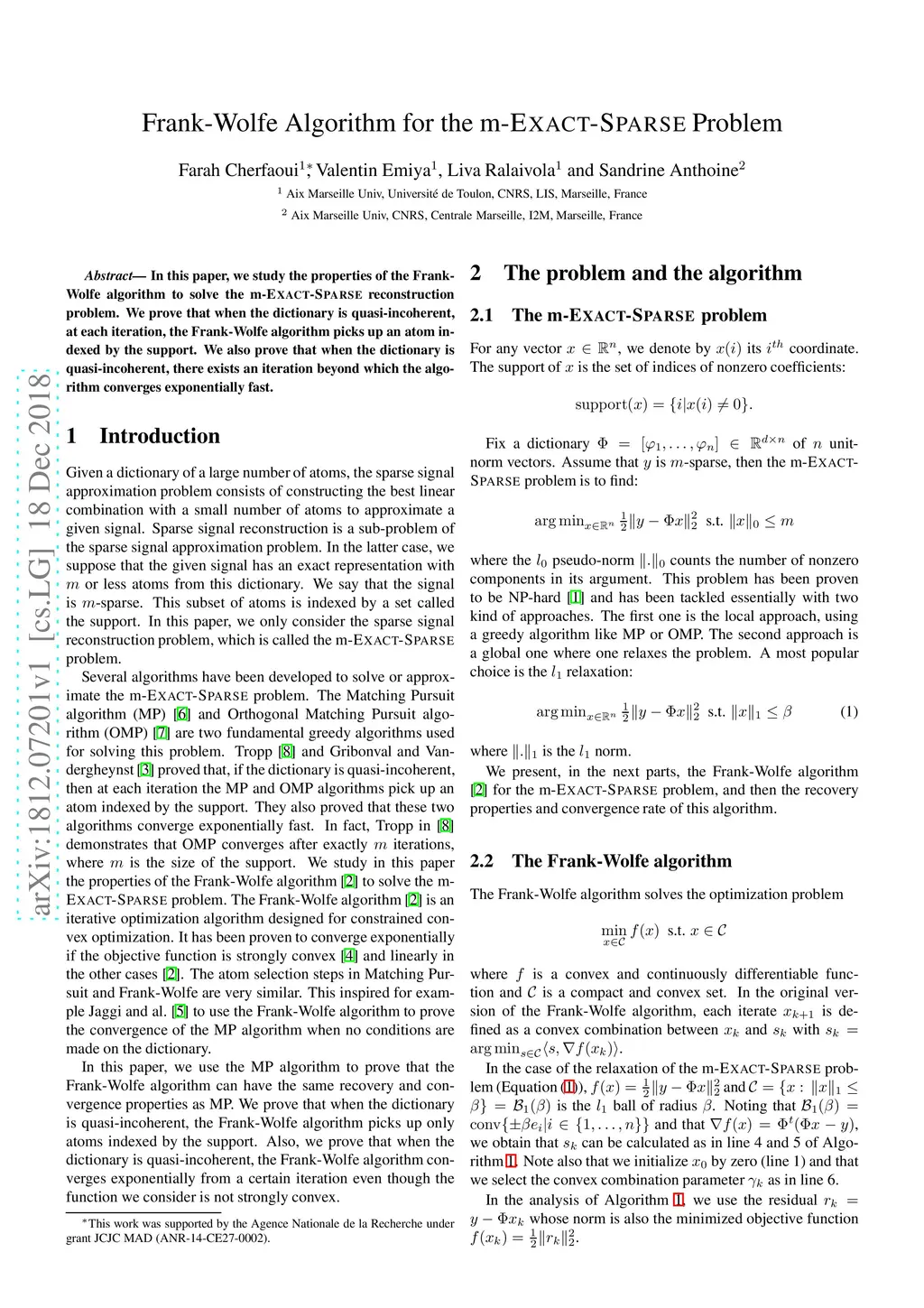 Frank-Wolfe Algorithm for the Exact Sparse Problem
