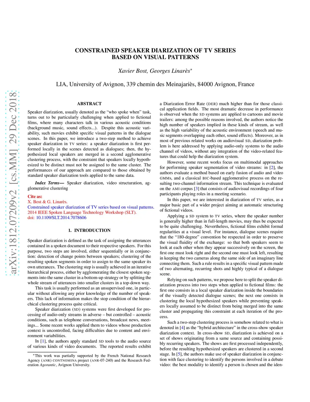 Speaker diarization, usually denoted as the ''who spoke when'' task, turns out to be particularly challenging when applied to fictional films, where many characters talk in various acoustic conditions (background music, sound effects...). Despite this acoustic variability , such movies exhibit specific visual patterns in the dialogue scenes. In this paper, we introduce a two-step method to achieve speaker diarization in TV series: a speaker diarization is first performed locally in the scenes detected as dialogues; then, the hypothesized local speakers are merged in a second agglomerative clustering process, with the constraint that speakers locally hypothesized to be distinct must not be assigned to the same cluster. The performances of our approach are compared to those obtained by standard speaker diarization tools applied to the same data.