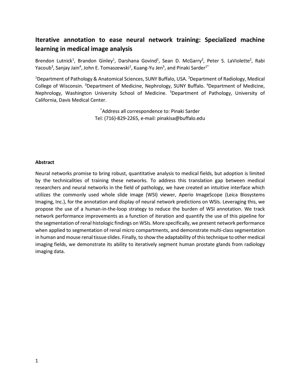 Neural networks promise to bring robust, quantitative analysis to medical fields, but adoption is limited by the technicalities of training these networks. To address this translation gap between medical researchers and neural networks in the field of pathology, we have created an intuitive interface which utilizes the commonly used whole slide image (WSI) viewer, Aperio ImageScope (Leica Biosystems Imaging, Inc.), for the annotation and display of neural network predictions on WSIs. Leveraging this, we propose the use of a human-in-the-loop strategy to reduce the burden of WSI annotation. We track network performance improvements as a function of iteration and quantify the use of this pipeline for the segmentation of renal histologic findings on WSIs. More specifically, we present network performance when applied to segmentation of renal micro compartments, and demonstrate multi-class segmentation in human and mouse renal tissue slides. Finally, to show the adaptability of this technique to other medical imaging fields, we demonstrate its ability to iteratively segment human prostate glands from radiology imaging data.