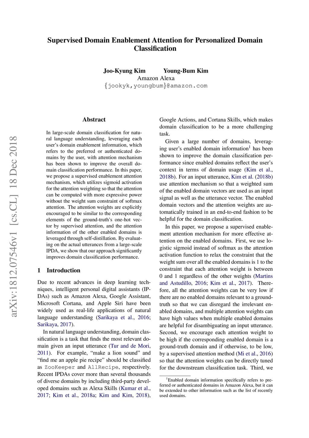 Supervised Domain Enablement Attention for Personalized Domain