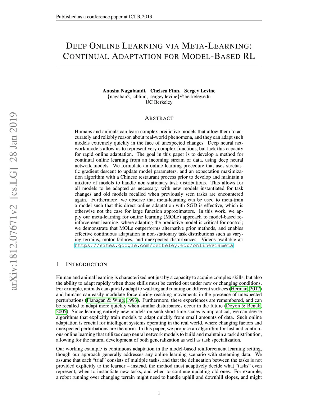 Deep Online Learning via Meta-Learning: Continual Adaptation for