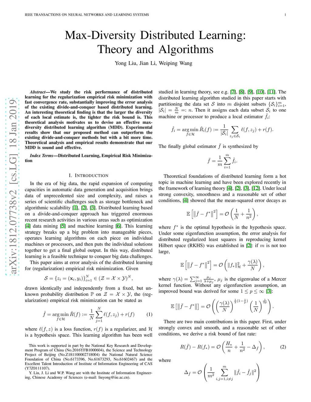 Max-Diversity Distributed Learning: Theory and Algorithms