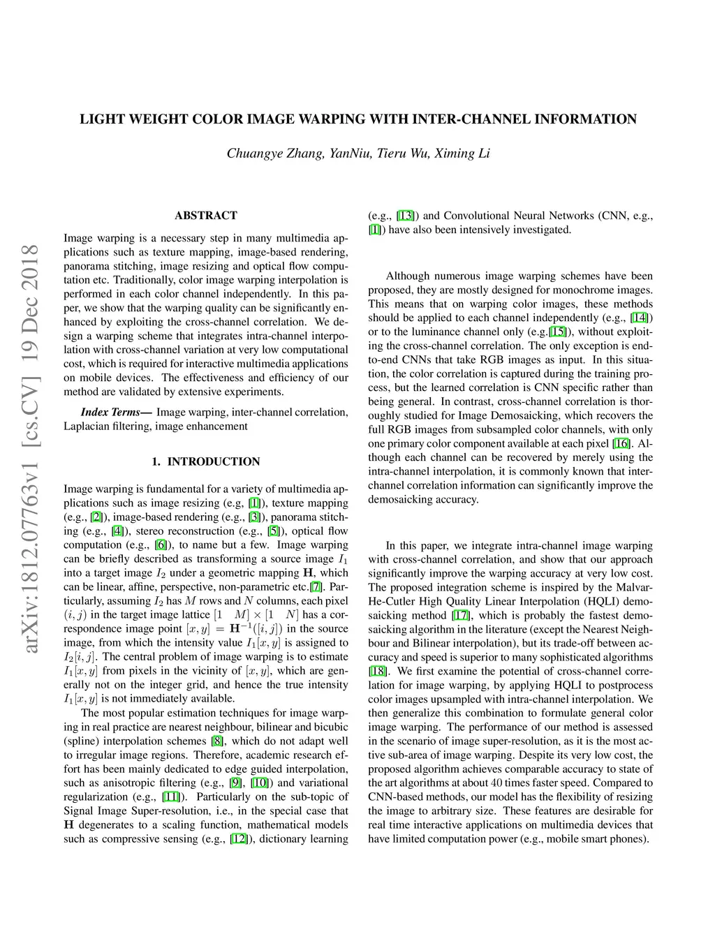 Light Weight Color Image Warping with Inter-Channel Information