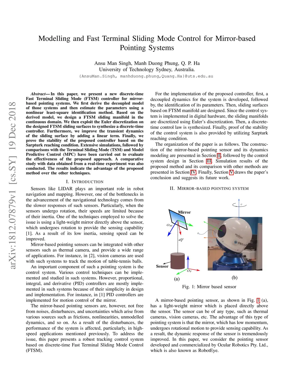 Modelling and Fast Terminal Sliding Mode Control for Mirror-based
