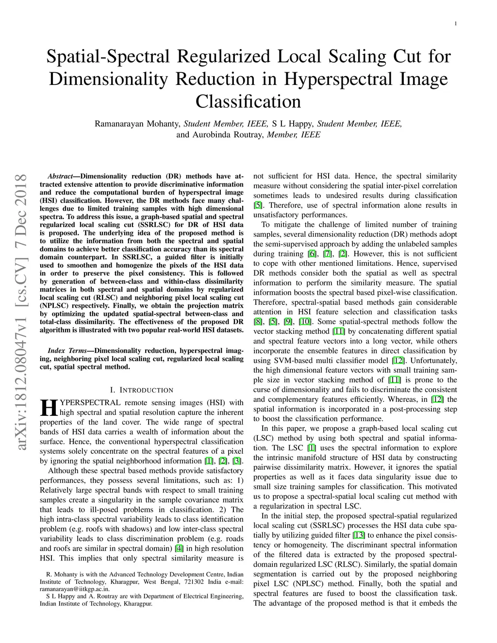 Spatial-Spectral Regularized Local Scaling Cut for Dimensionality