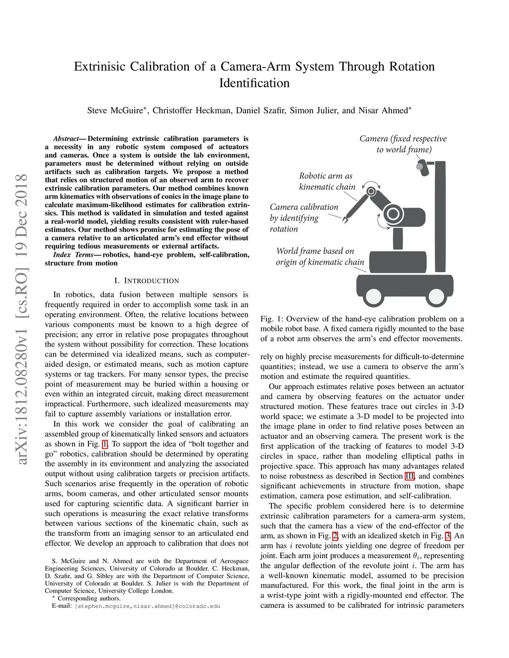 Extrinisic Calibration of a Camera-Arm System Through Rotation