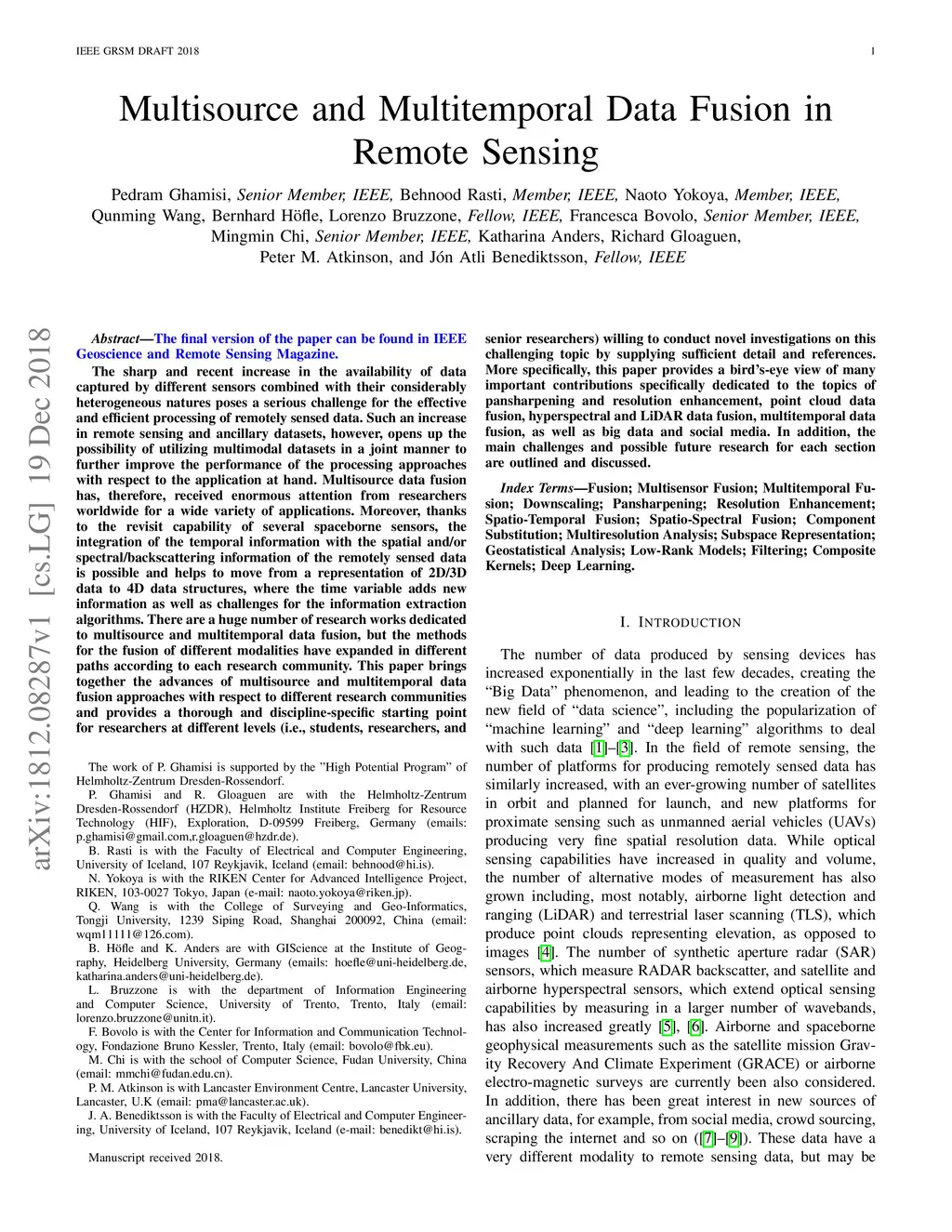 Multisource and Multitemporal Data Fusion in Remote Sensing