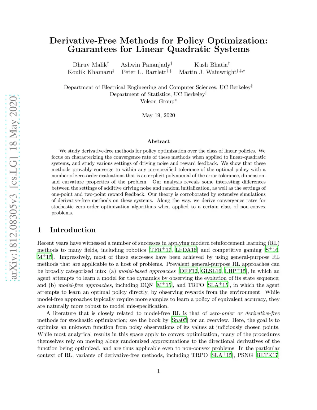 Derivative-Free Methods for Policy Optimization: Guarantees for Linear