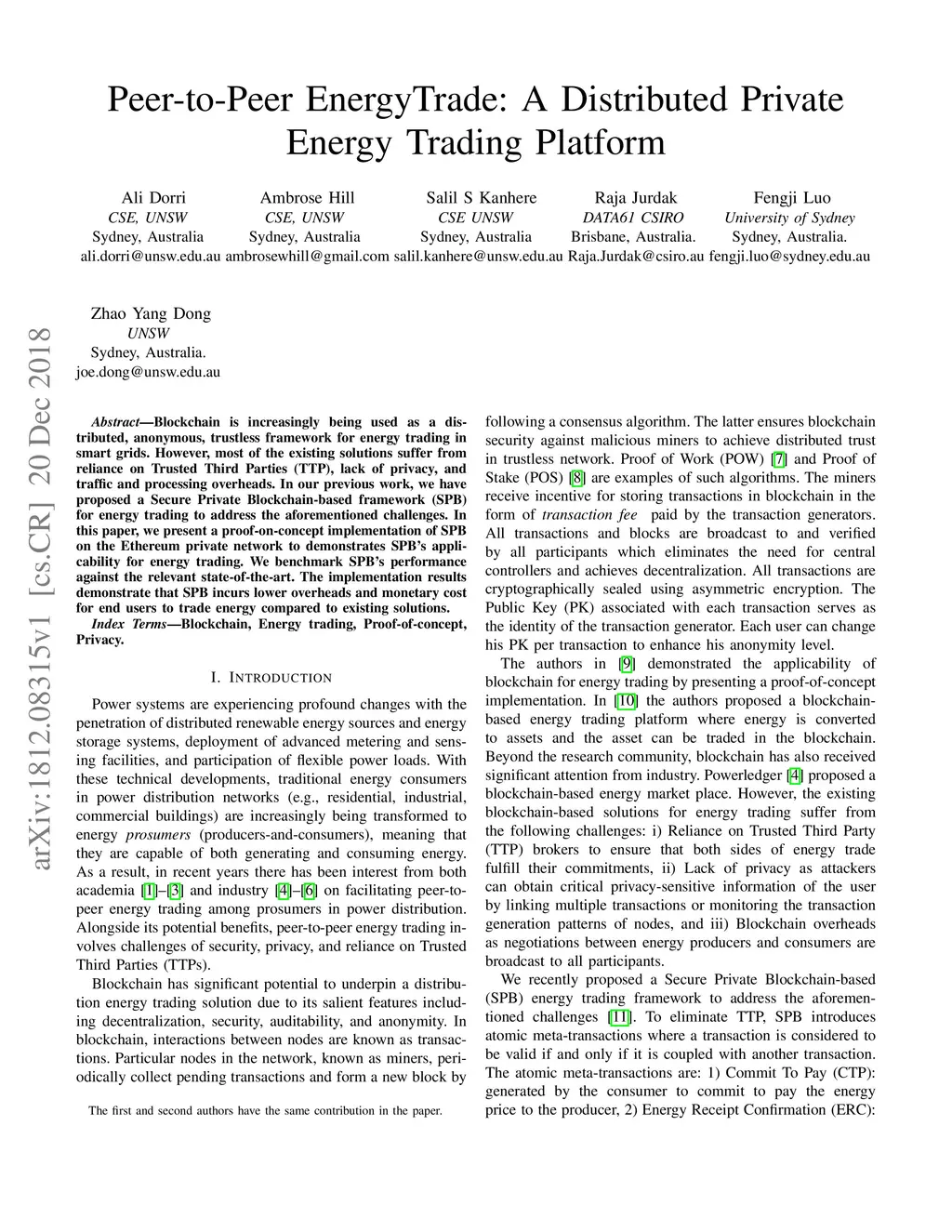 Peer-to-Peer EnergyTrade: A Distributed Private Energy Trading Platform
