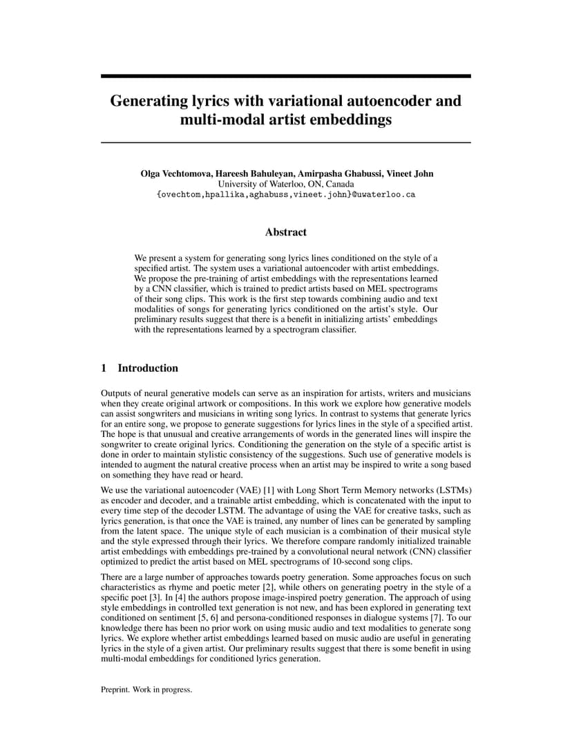 Generating lyrics with variational autoencoder and multi-modal artist