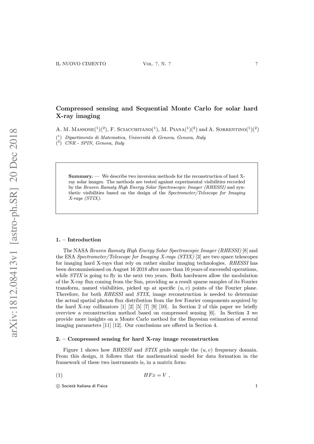 Compressed sensing and Sequential Monte Carlo for solar hard X-ray