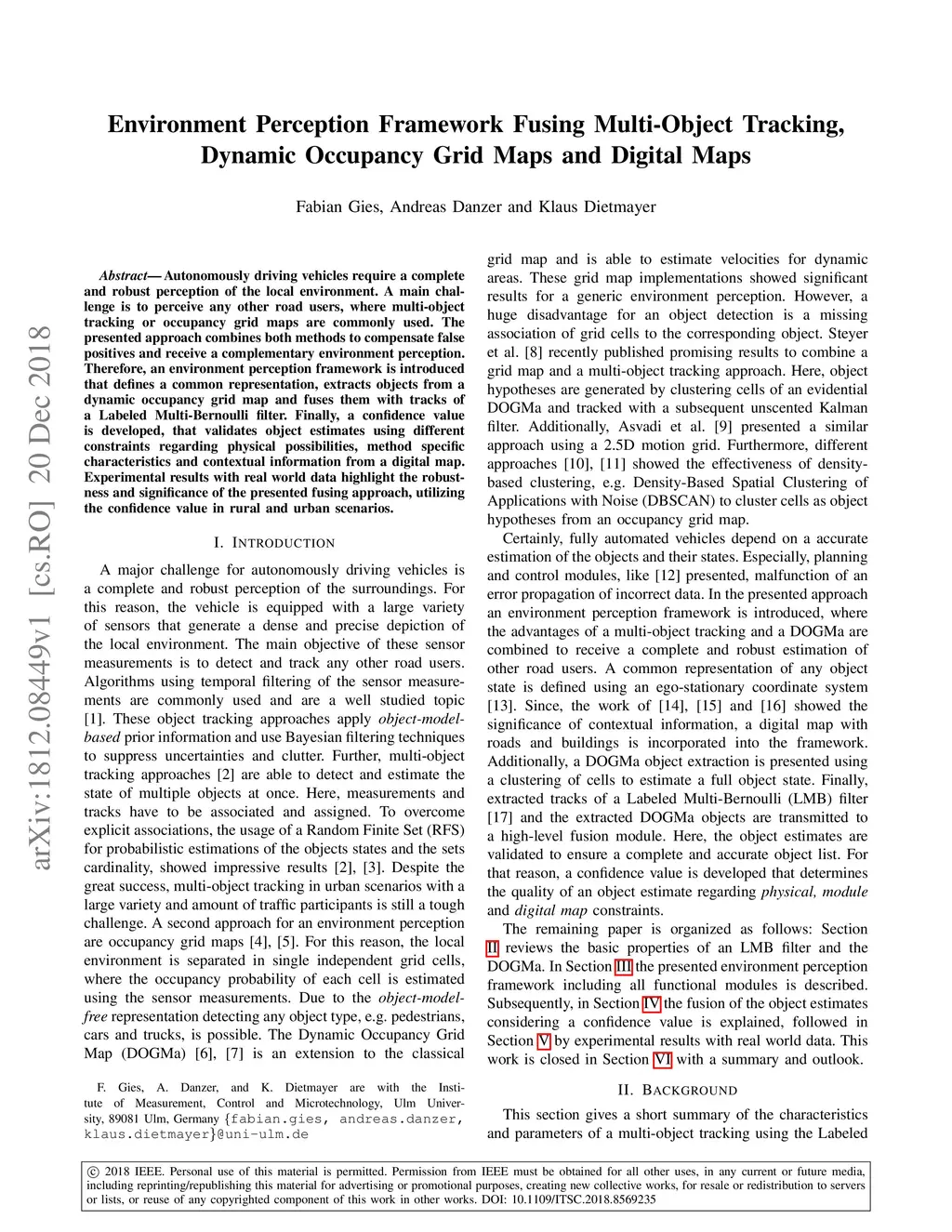 Environment Perception Framework Fusing Multi-Object Tracking, Dynamic