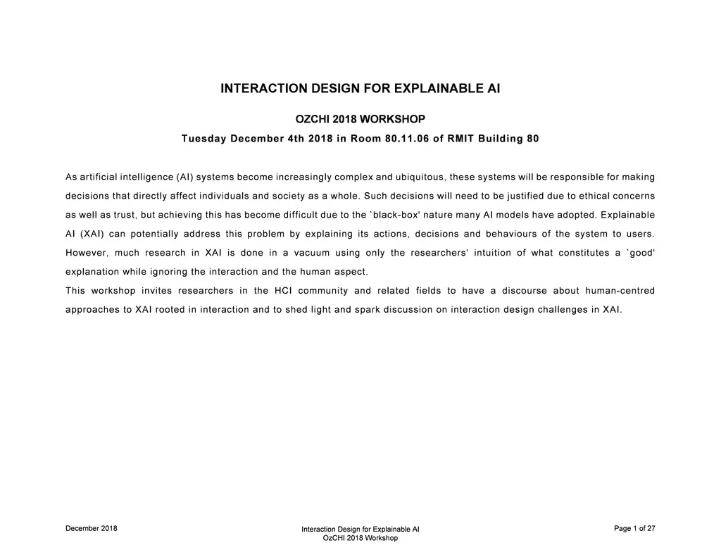 Interaction Design for Explainable AI: Workshop Proceedings
