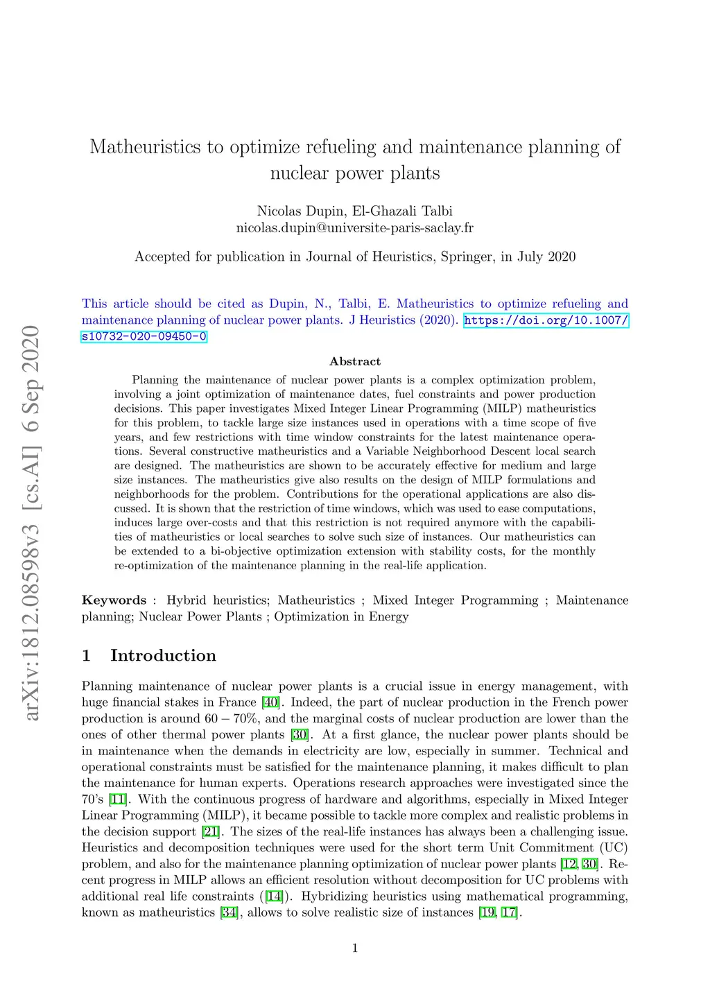 Matheuristics to optimize refueling and maintenance planning of nuclear