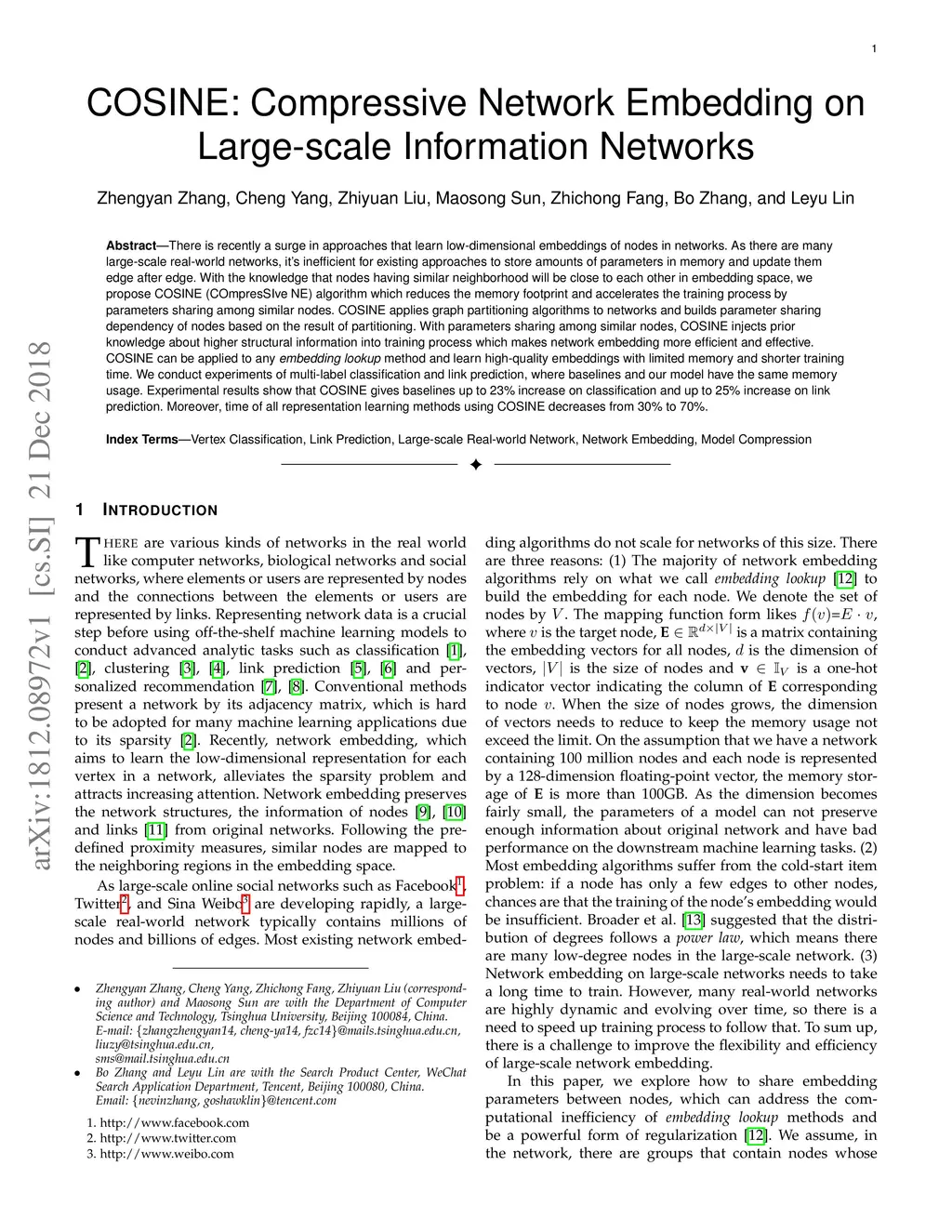 COSINE: Compressive Network Embedding on Large-scale Information