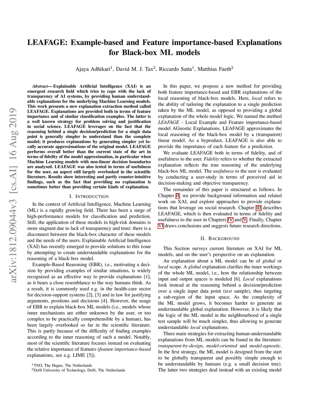 LEAFAGE: Example-based and Feature importance-based Explanationsfor