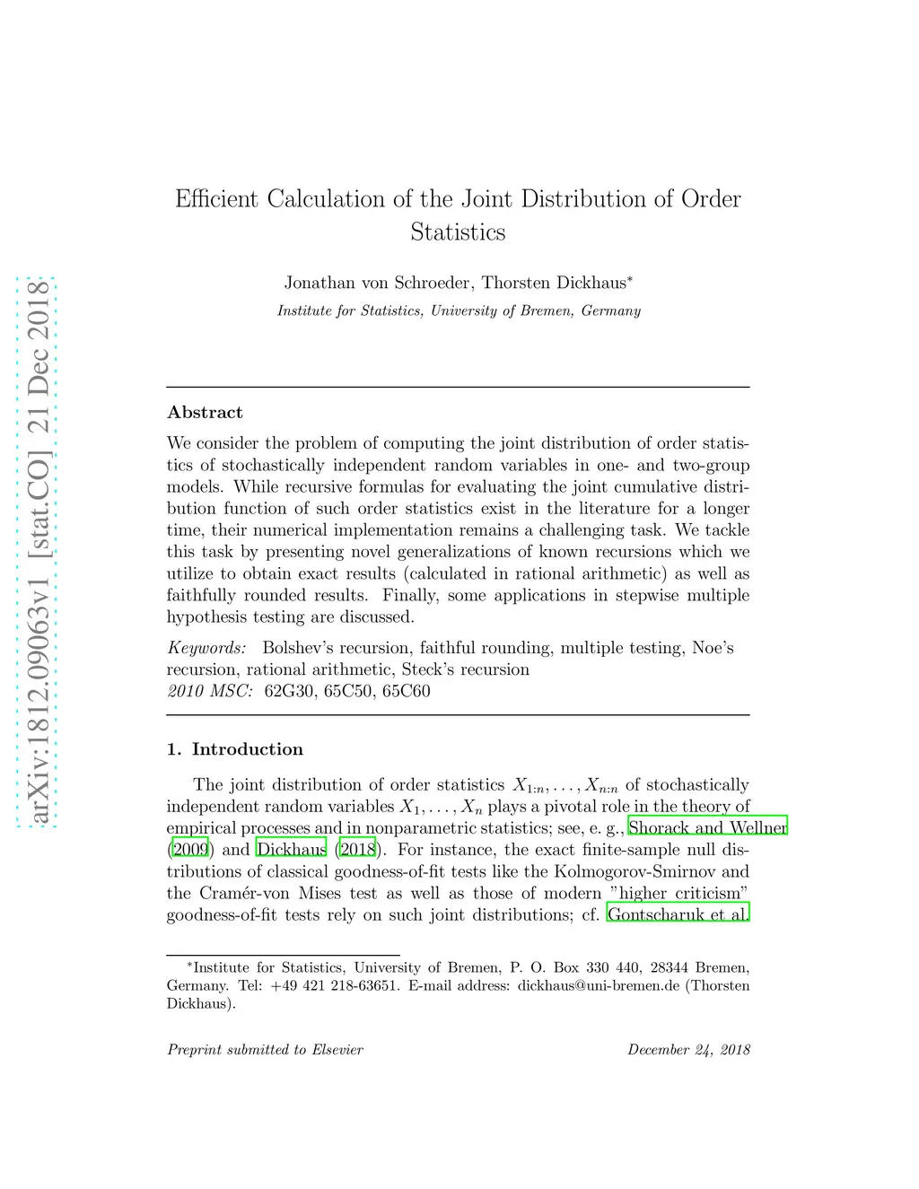 We consider the problem of computing the joint distribution of order statistics of stochastically independent random variables in one- and two-group models. While recursive formulas for evaluating the joint cumulative distribution function of such order statistics exist in the literature for a longer time, their numerical implementation remains a challenging task. We tackle this task by presenting novel generalizations of known recursions which we utilize to obtain exact results (calculated in rational arithmetic) as well as faithfully rounded results. Finally, some applications in stepwise multiple hypothesis testing are discussed.