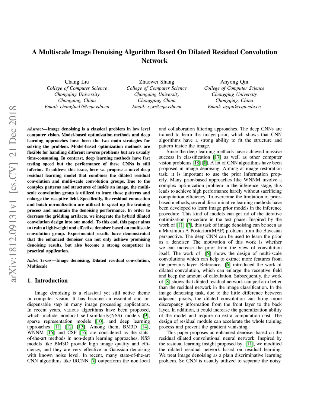 A Multiscale Image Denoising Algorithm Based On Dilated Residual