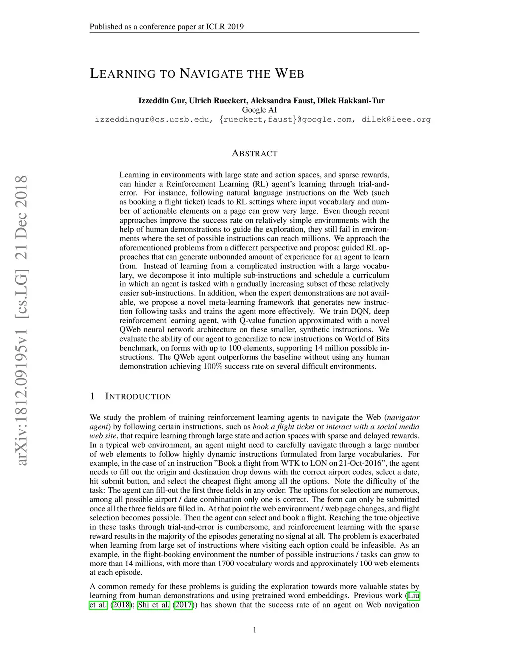 Learning to Navigate the Web