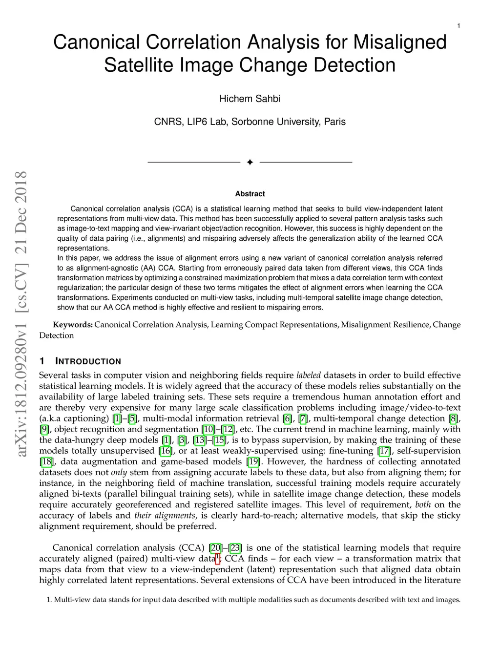 Canonical Correlation Analysis for Misaligned Satellite Image Change
