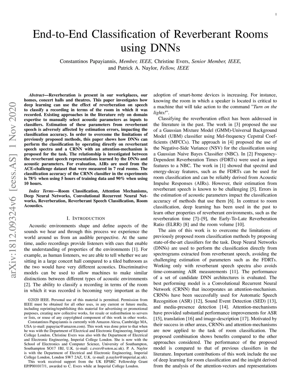 End-to-End Classification of Reverberant Rooms using DNNs